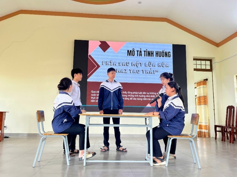 <p style="text-align:justify;">Đây là một hoạt động thiết thực, ý nghĩa nhằm nâng cao nhận thức pháp luật cho học sinh, đồng thời góp phần xây dựng môi trường học đường lành mạnh, an toàn và văn minh.</p><p style="text-align:justify;">Tham gia chương trình, học sinh được tìm hiểu sâu rộng về các lĩnh vực pháp luật thiết yếu gắn liền với đời sống học đường và xã hội như: Luật Bình đẳng giới, Luật Trẻ em, Luật Giáo dục, Bộ Luật Hình sự, Luật Trật tự an toàn giao thông đường bộ, Luật An ninh mạng, Luật Hôn nhân và Gia đình. Thông qua các phần trình bày sinh động, các tiểu phẩm tình huống, phần thi hỏi – đáp và xử lý tình huống thực tế, nội dung pháp luật vốn khô khan đã trở nên gần gũi, dễ hiểu và hấp dẫn hơn đối với học sinh.</p><figure class="image image_resized" style="width:100%;"><img style="aspect-ratio:802/601;" src="https://thptphandinhphung.lamdong.edu.vn/uploads/news/2026_04/picture2.jpg" width="802" height="601" /></figure><p style="text-align:center;"><i>Học sinh lớp 11A1 mô tả tình huống để làm rõ cho Bộ Luật dân sự.</i></p><p style="text-align:justify;">Hoạt động này không chỉ giúp các em nắm vững những quy định cơ bản của pháp luật mà còn góp phần hình thành ý thức tôn trọng và chấp hành pháp luật trong đời sống hằng ngày. Từ đó, học sinh dần xây dựng lối sống lành mạnh, văn minh, có trách nhiệm với bản thân, gia đình và cộng đồng. Đây cũng là nền tảng quan trọng để các em trở thành những công dân có ích cho xã hội trong tương lai.</p><p style="text-align:justify;">Bên cạnh mục tiêu giáo dục kiến thức pháp luật, chương trình còn tạo điều kiện để học sinh phát huy năng lực cá nhân thông qua các hình thức học tập trải nghiệm sáng tạo. Các em được rèn luyện kỹ năng tìm hiểu thông tin, thuyết trình trước đám đông, làm việc nhóm, sử dụng công nghệ thông tin và phát triển tư duy phản biện. Sự chủ động, tự tin và sáng tạo của học sinh trong từng phần thi đã góp phần làm nên thành công chung của hoạt động.</p><figure class="image image_resized" style="width:96.98%;"><img style="aspect-ratio:1037/778;" src="https://thptphandinhphung.lamdong.edu.vn/uploads/news/2026_04/picture3.jpg" width="1037" height="778" /></figure><p style="text-align:justify;">Đặc biệt, hoạt động ngoại khóa lần này còn góp phần tăng cường hiệu quả giáo dục pháp luật thông qua việc tích hợp liên môn giữa các môn học như Ngữ văn, Lịch sử, Địa lí và Giáo dục Kinh tế và Pháp luật. Cách tiếp cận này không chỉ giúp học sinh hiểu sâu vấn đề mà còn tạo sự liên kết chặt chẽ giữa kiến thức sách vở và thực tiễn cuộc sống.</p><p style="text-align:justify;">Kết thúc buổi ngoại khóa, Tổ Khoa Học Xã Hội đã công bố kết quả của các lớp:&nbsp;</p><ul><li><p style="text-align:justify;">Giải nhất: chi đoàn lớp 11A3</p></li><li><p style="text-align:justify;">Giải nhì: chi đoàn lớp 10A2 và 11A1.</p></li><li><p style="text-align:justify;">Giải ba: các chi đoàn lớp 10A1, 10A3, 11A2</p></li><li><p style="text-align:justify;">Giải khuyến khích: các chi đoàn lớp 10A4, 11A4, 11A5.</p></li><li><p style="text-align:justify;">Giải thuyết trình viên xuất sắc: em Trần Nguyễn Sơn Hải lớp 11A3.</p></li><li><p style="text-align:justify;">Giải thuyết trình viên sáng tạo nhất: em Nguyễn Doãn Anh Kiệt và em Nguyễn Thị Hà lớp 11A1.</p></li><li><p style="text-align:justify;">Giải câu trả lời vấn đáp hay nhất: em Khả Vy lớp 10A1.</p></li></ul><p style="text-align:justify;">Có thể khẳng định, hoạt động ngoại khóa “Tuyên truyền viên pháp luật trong trường học” là một sân chơi bổ ích, góp phần nâng cao chất lượng giáo dục toàn diện tại Trường THPT Phan Đình Phùng – Đam Rông. Trong thời gian tới, nhà trường sẽ tiếp tục tổ chức nhiều hoạt động ý nghĩa tương tự nhằm trang bị cho học sinh những kiến thức, kỹ năng cần thiết để tự tin bước vào cuộc sống.</p>
